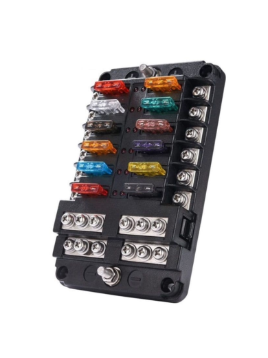 12-Way Fuse Box with LED Indicators & Negative Bus – 12-24V 120A Marine Grade